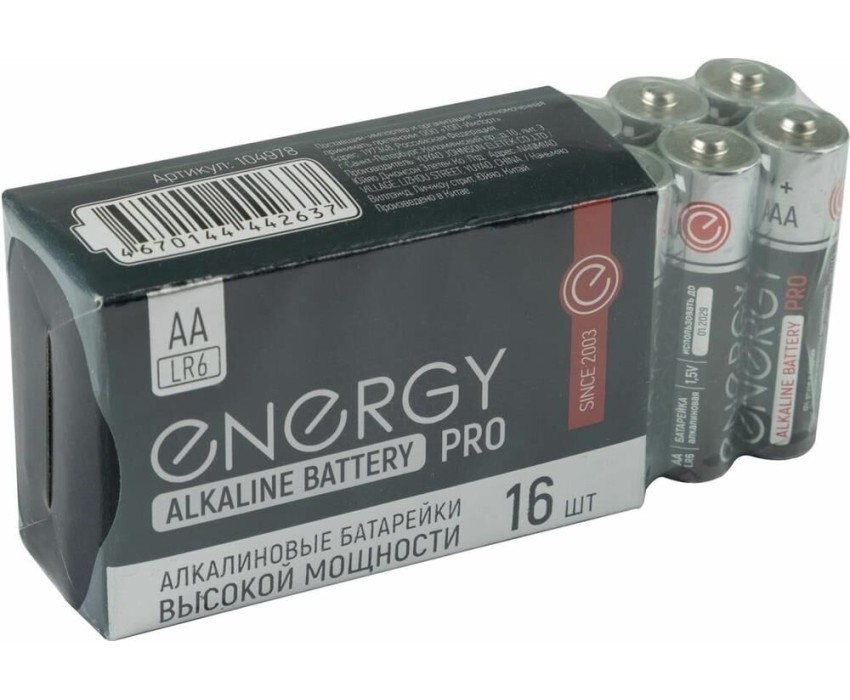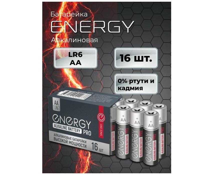 Батарейка алкалиновая Energy Pro LR6/16S (АА) 16 шт / термоусадка + коробка