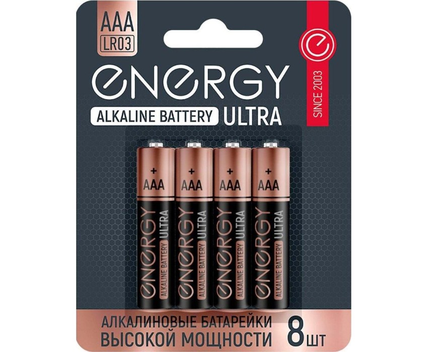 Батарейка алкалиновая Energy Ultra LR03/8B (АAА) 8 шт/блистер