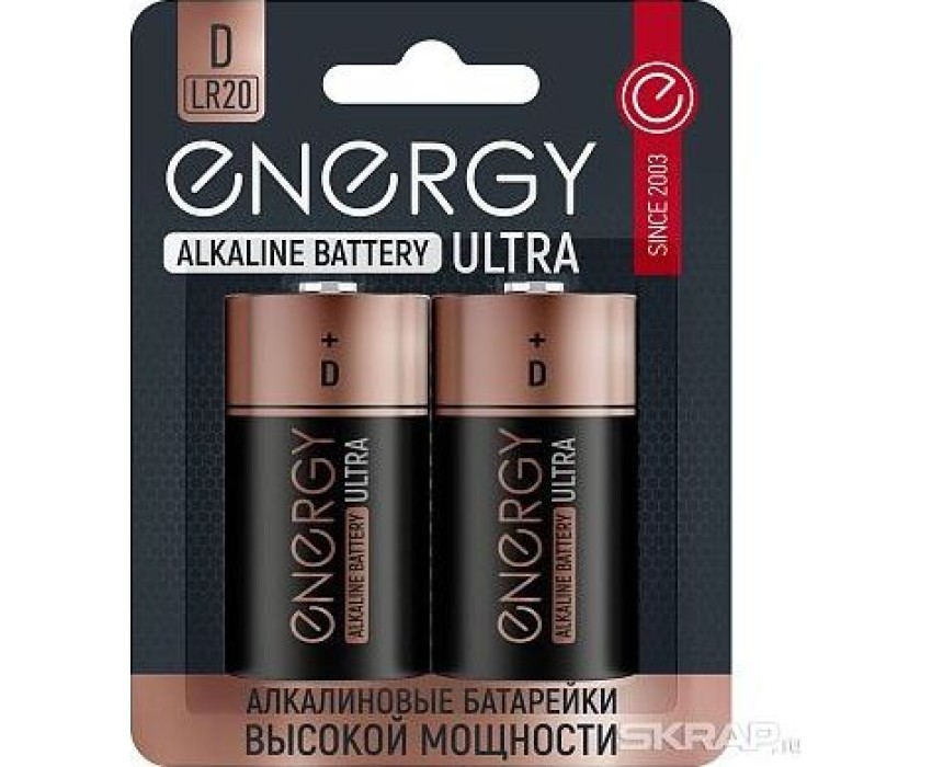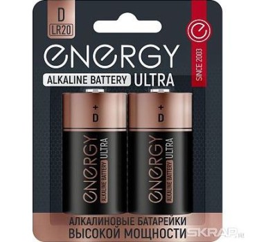 Батарейка алкалиновая ENERGY Ultra LR20/2B (D) 104983