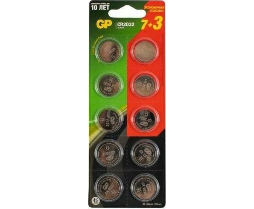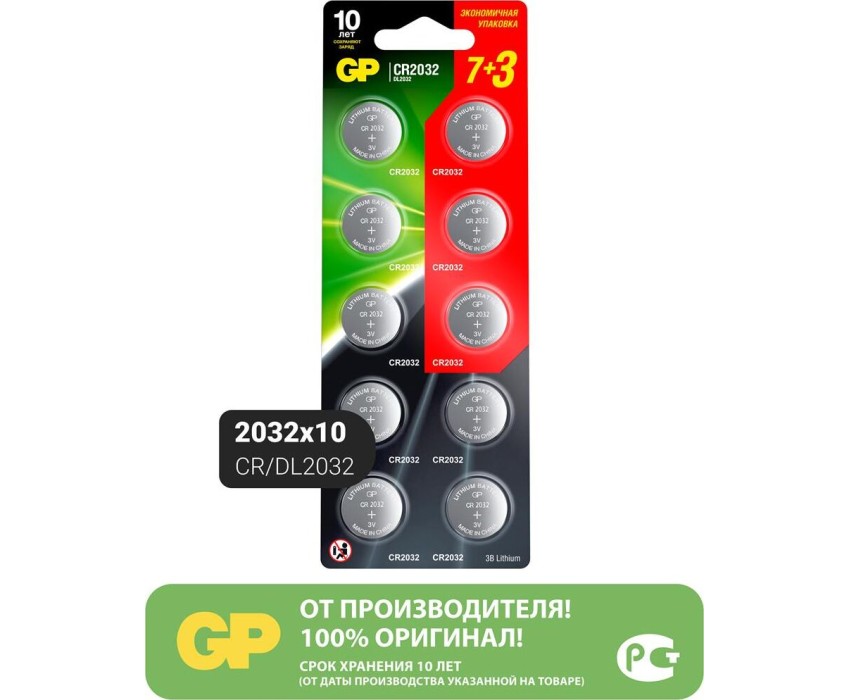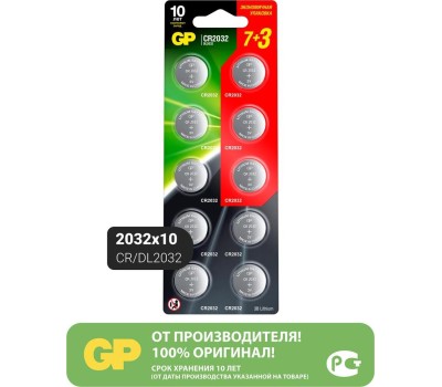 Батарейка GP (15743) Lithium Cell CR2032-7/3-2CR10 CR2032 (10шт) блистер