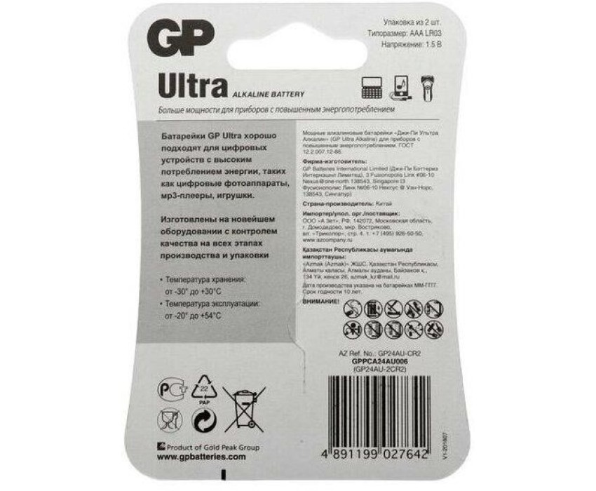 GP Батарея Ultra Alkaline 24AU LR03 (AAA)