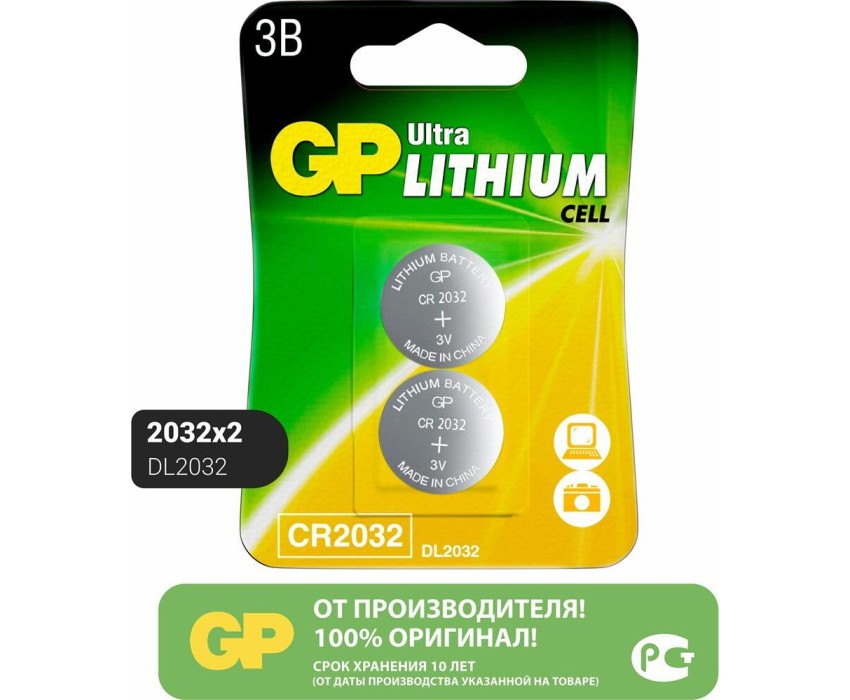Литиевая батарейка GP (17041) CR2032-2CRU2 (CR2032)
