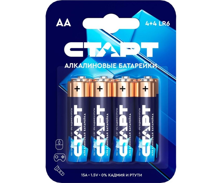 Алкалиновые/щелочные батарейки Китай Характеристики: 1,5 В; Типоразмер АА, LR6 4+4 шт. на блистере