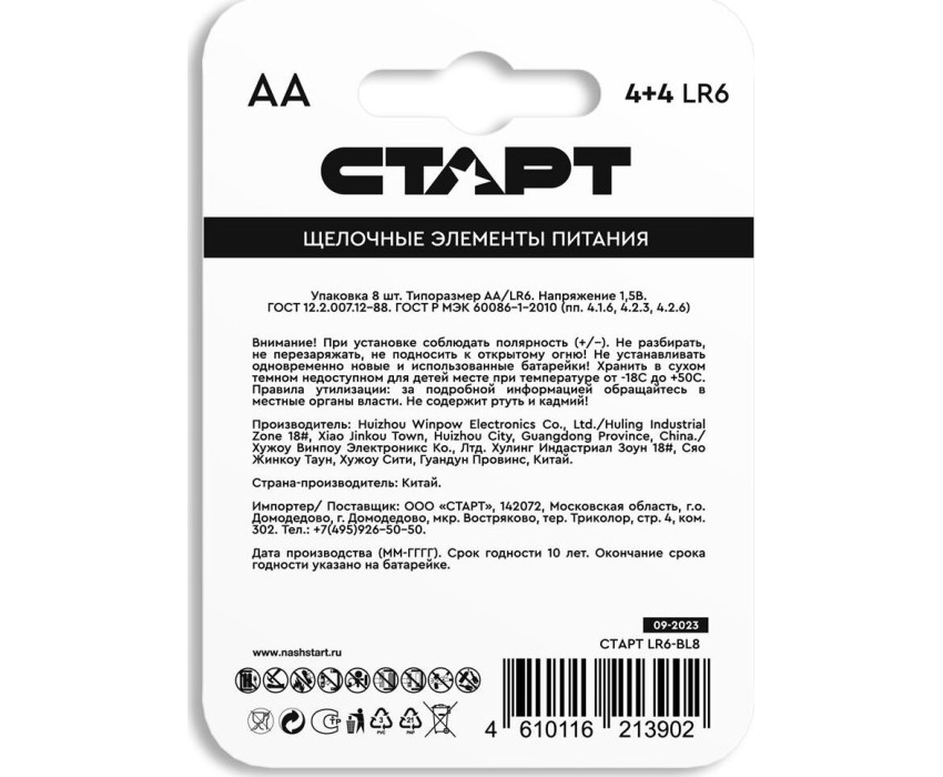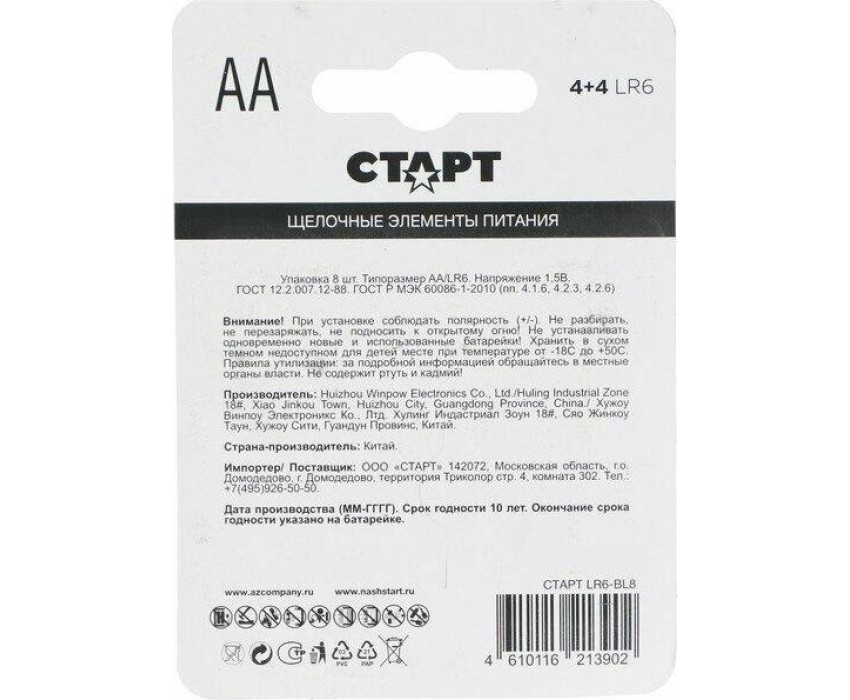 Алкалиновая батарейка СТАРТ (19207) LR6-BL8 N