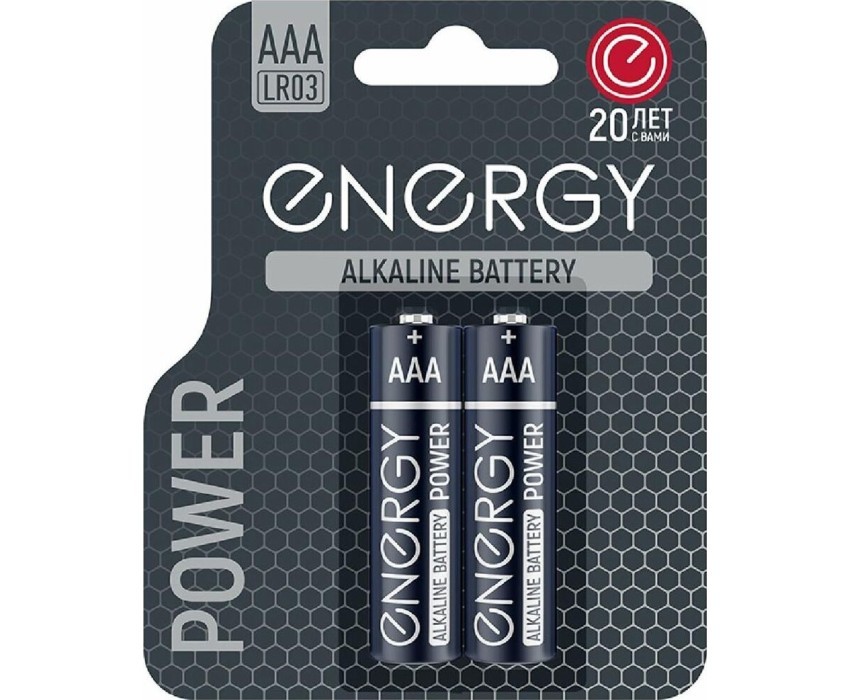 Батарейка алкалиновая Energy LR03/2B Типоразмер - LR03 / ААА Серия Power Защита от протечек Стальной корпус с увеличенной толщиной стенки Срок предэксплуатационного хранения - 7 лет 2 шт в блистере