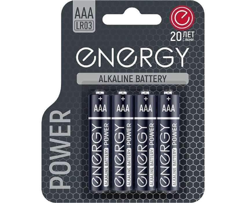 Батарейка алкалиновая Energy LR03/4B Типоразмер - LR03 / ААА Серия Power Защита от протечек Стальной корпус с увеличенной толщиной стенки Срок предэксплуатационного хранения - 7 лет 4 шт в блистере