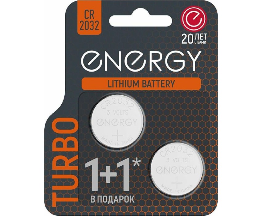 Батарейка литиевая Energy CR2032/2B Типоразмер - CR2032 Серия Turbo Максимальная мощность Мембранная защита от протечек Стальной корпус Срок предэксплуатационного хранения - 5 лет 2 шт в блистере
