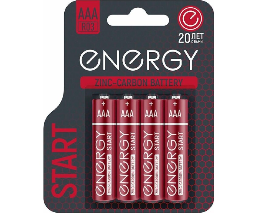 Батарейка солевая Energy R03/4B Типоразмер - R03 / АAА Серия Start Super Heavy Duty Защита от протечек Стальной корпус с увеличенной толщиной стенки Срок предэксплуатационного хранения - 5 лет 4 шт в блистере