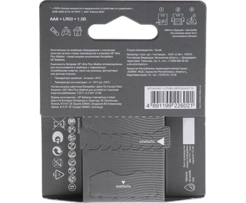 Батарейка GP (1195) 24AUPA21-2CRSB4 (AAA)
