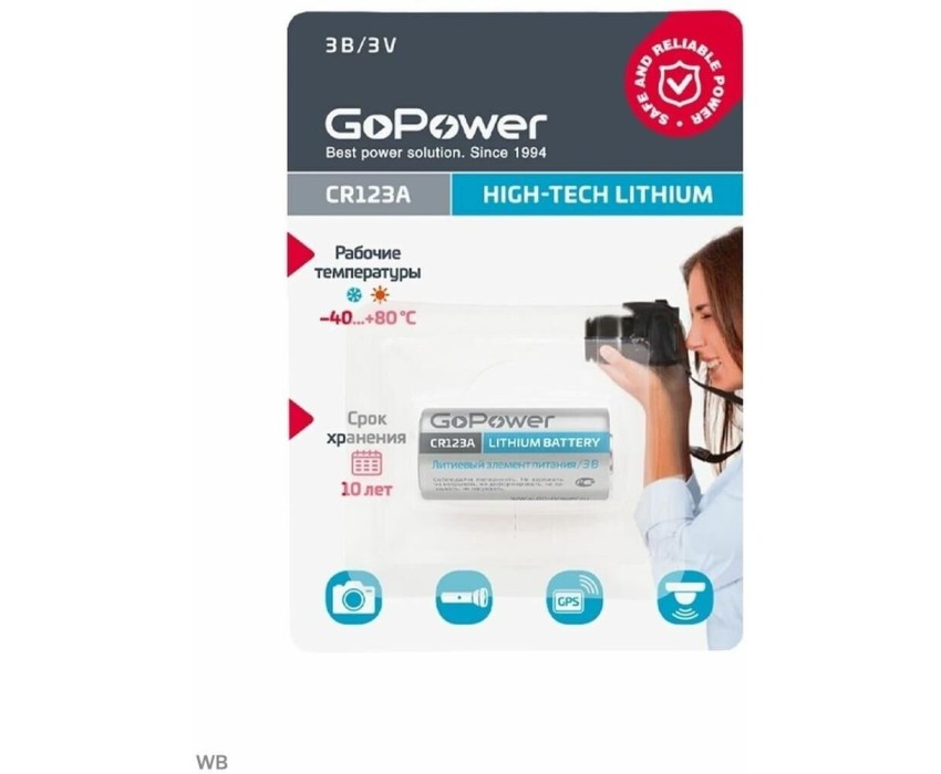 GOPOWER Элемент питания (батарейка литиевая) CR123A BL1 3V 00-00018324 1500MAH