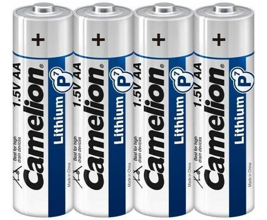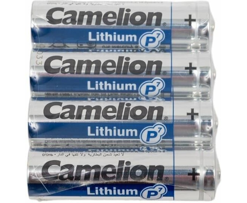 Литиевые батарейки для устройств с высоким энергопотреблением. Работают до 40% дольше щелочных батареек. Батарейка Camelion FR6-SP4, напряжение 1,5В, емкость 2700 мА*ч, кол-во в упаковке 4 шт., упаковка шринк, использовать при температуре от -40 до + 60°C, хранить в сухом помещении при температуре от -40 до + 60°C. Срок хранения 10 лет.