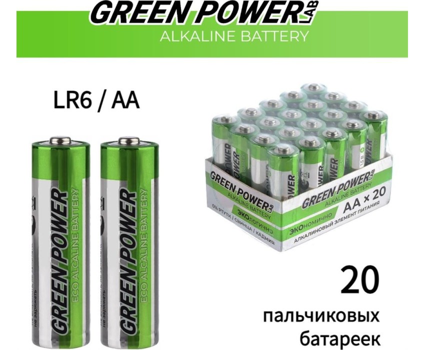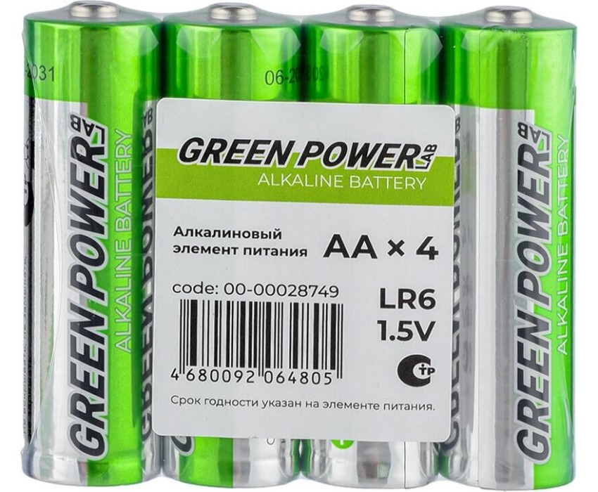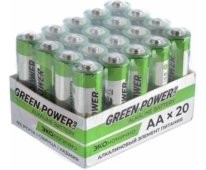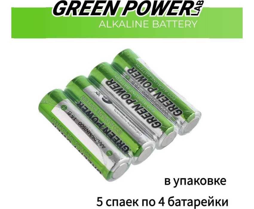 Батарейки GREEN POWERLAB (00-00028751) LR6 AA BOX20 Shrink 4 Alkaline 1.5V