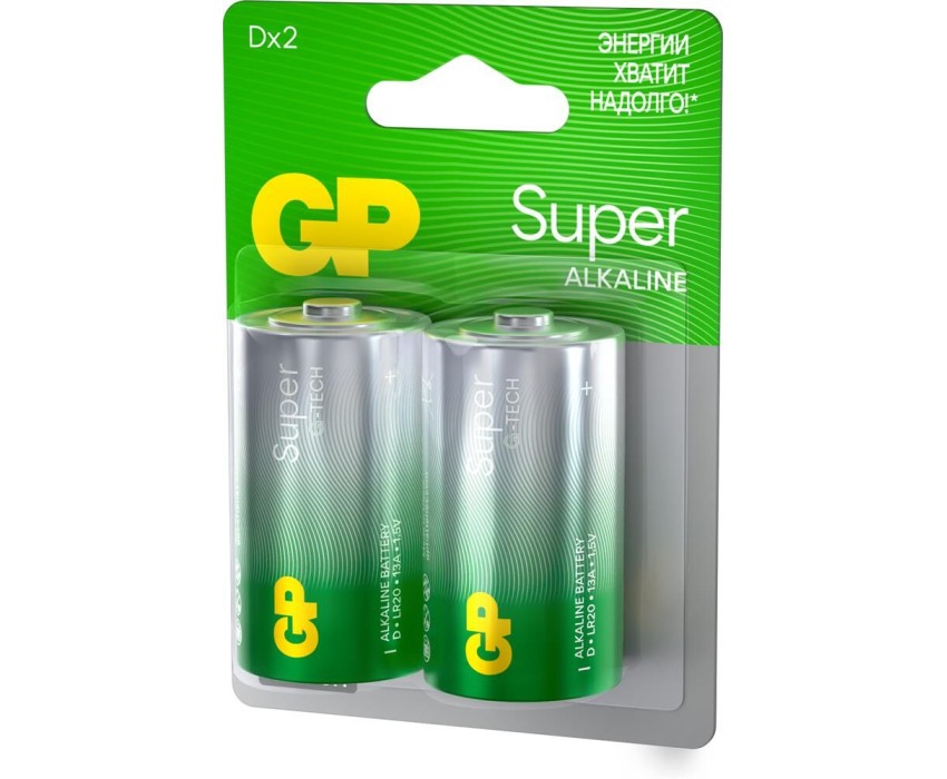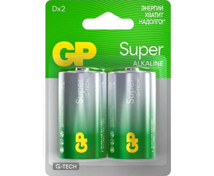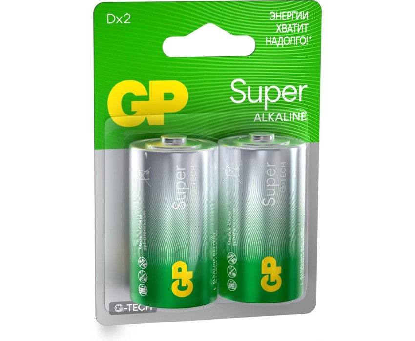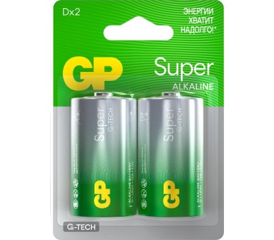 Алкалиновые батарейки GP Super Alkaline G-Tech 13А типоразмера D - 2 шт. на блистере
