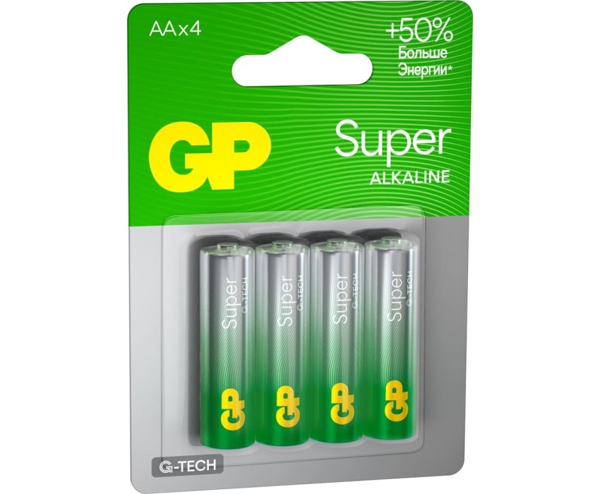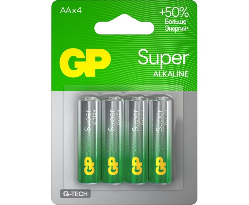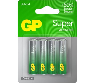 Алкалиновые батарейки GP Super Alkaline G-Tech 15А АA - 4 шт. на блистере