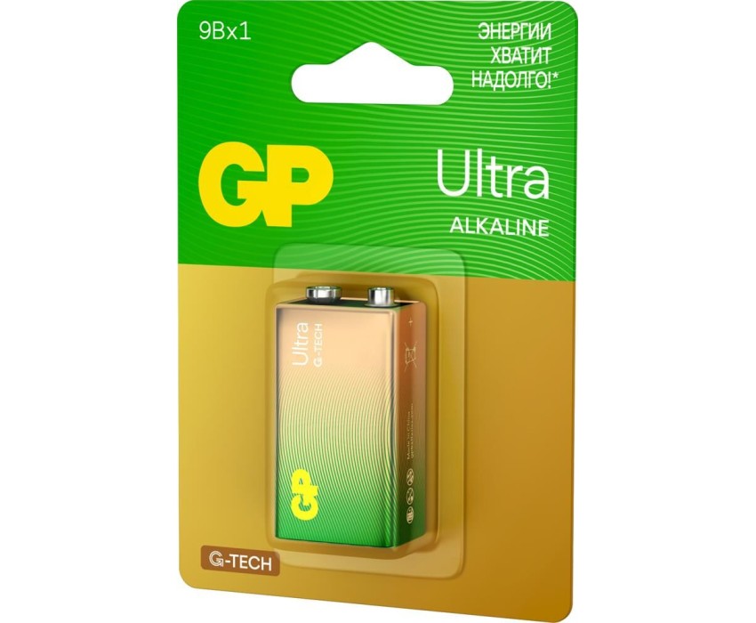 Алкалиновая батарейка GP Ultra Alkaline G-Tech 9V Крона - 1 шт. на блистере