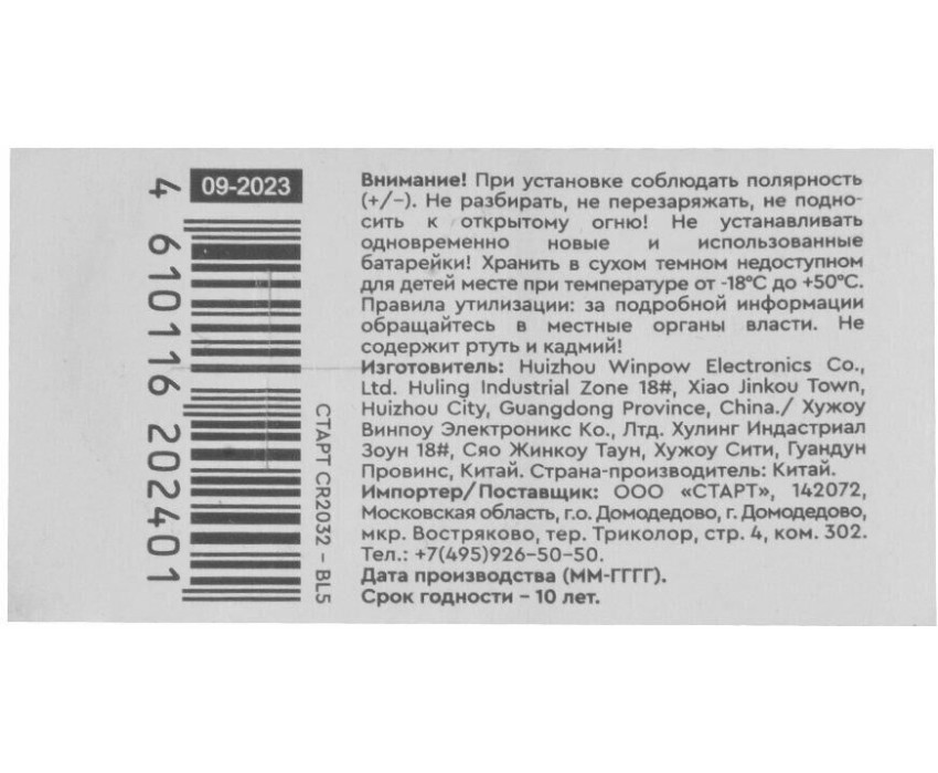 Батарейки СТАРТ (490) CR2032 - BL5