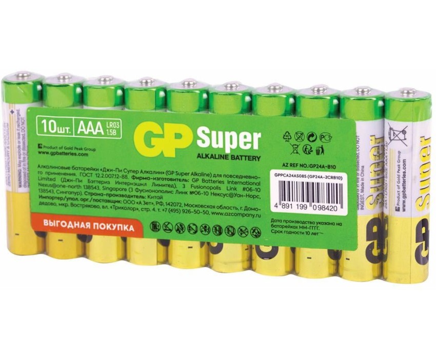 GP AAA Батарейка Super Alkaline 24AA21-2CRSWC10, 10 шт
