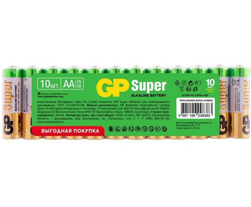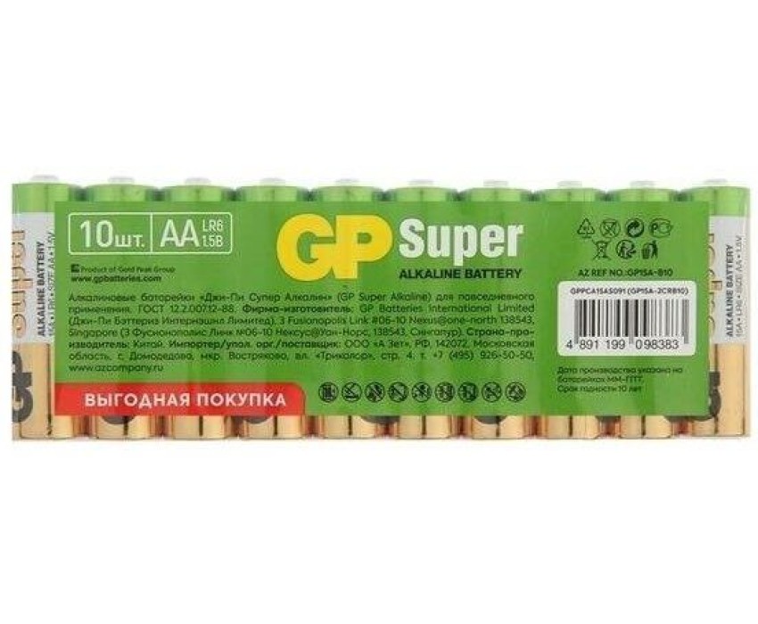 GP AA Батарейка Super Alkaline 15AA21-2CRSWC10, 10 шт