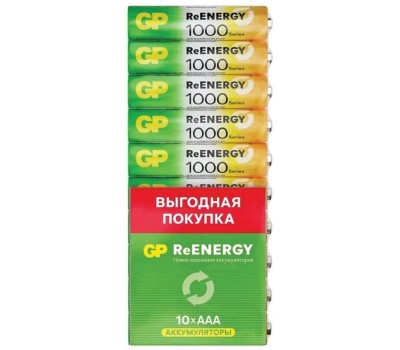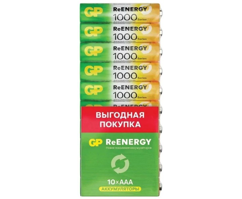 GP AAA Аккумуляторная батарейка 100AAAHCRGY-CRB10, 10 шт. 1000мAч