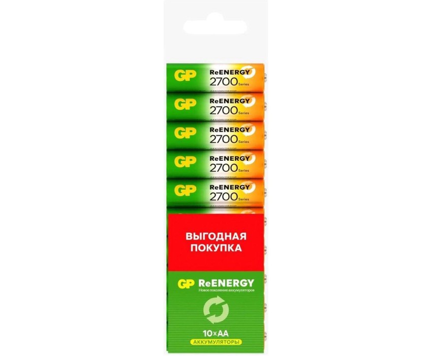 GP AA Аккумуляторная батарейка 270AAHCRGY-CRB10, 10 шт. 2700мAч