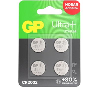 GP CR2032 Батарейка Lithium CR2032UP, 4 шт. 280мAч