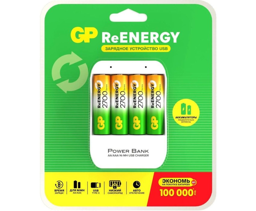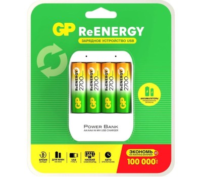 GP AA Аккумуляторная батарейка + Зарядное устройство 270AAHC/CPB-2CR4, 4 шт. 2700мAч
