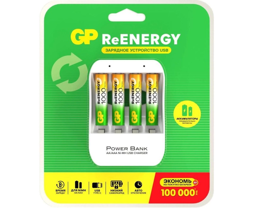 GP Зарядное устройство Basic CPB-2CR4, 4 шт. 1000мAч