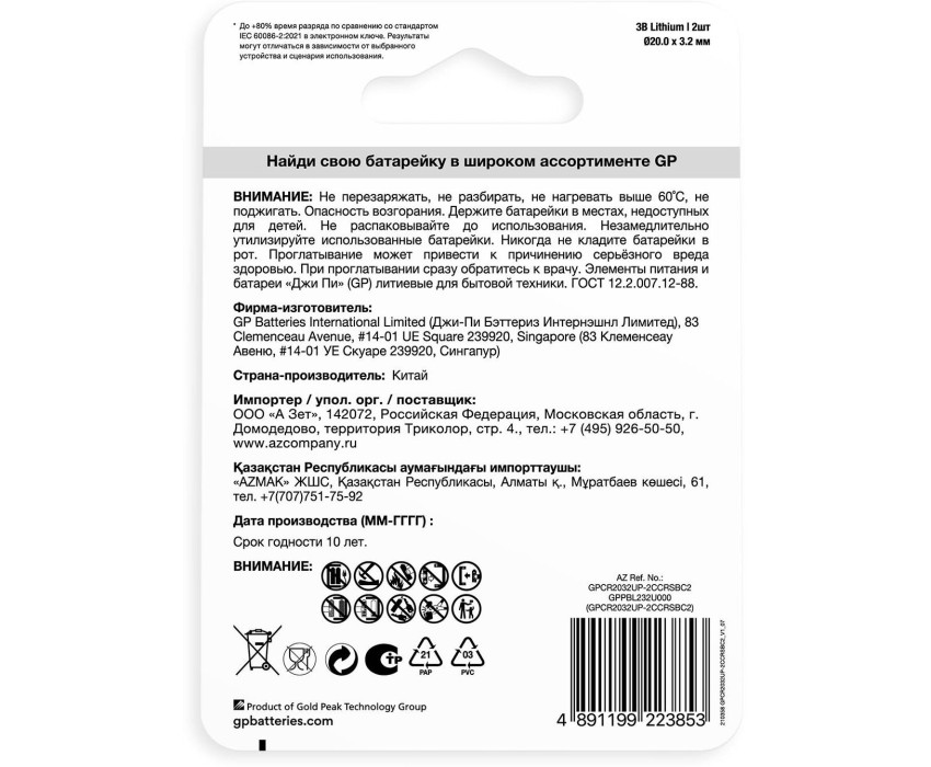 GP BATTERIES GP CR2032UP-2CCRSBC2 20/1200