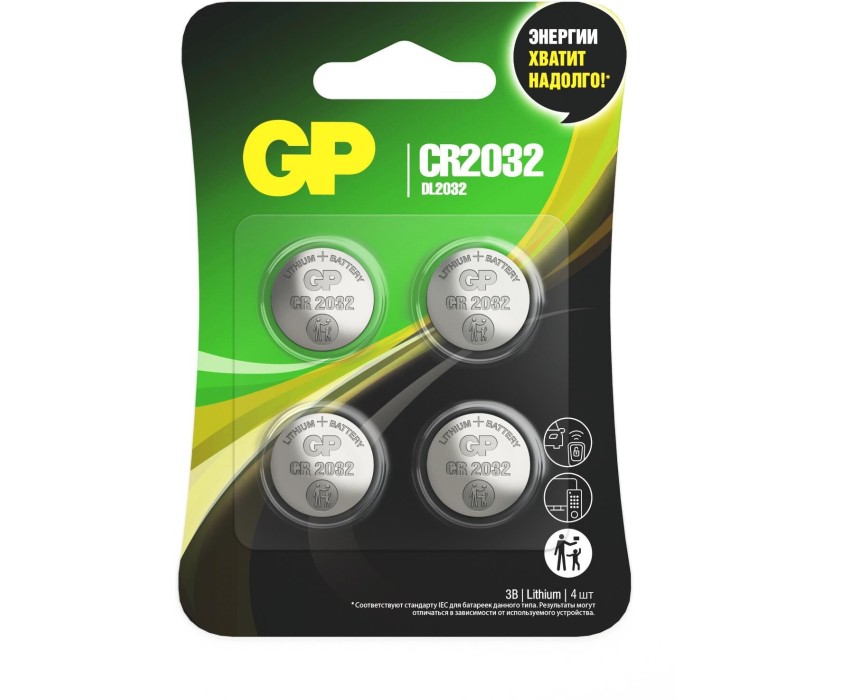 GP CR2032-7CRU4 Компактные дисковые элементы питания GP применяются в высокоточных портативных устройствах. Прекрасно подходят для наручных часов, фотооборудования, микрокалькуляторов, слуховых аппаратов, компьютерной периферии. Отличаются более длительной и стабильной энергоотдачей по сравнению с аналогами других электрохимических систем. Гарантированно низкий саморазряд обеспечивает сохранность номинальной мощности при минимальных потерях во время долгого хранения данных элементов питания. Срок хранения батарей дискового типа составляет до 10 лет. Литиево-магниевый состав щелочного электролита является оптимальным электроприборов благодаря высокому для данного класса напряжению в 3В. Элементы питания GP способны эффективно работать в широком диапазоне температур от -10 до +60°C.