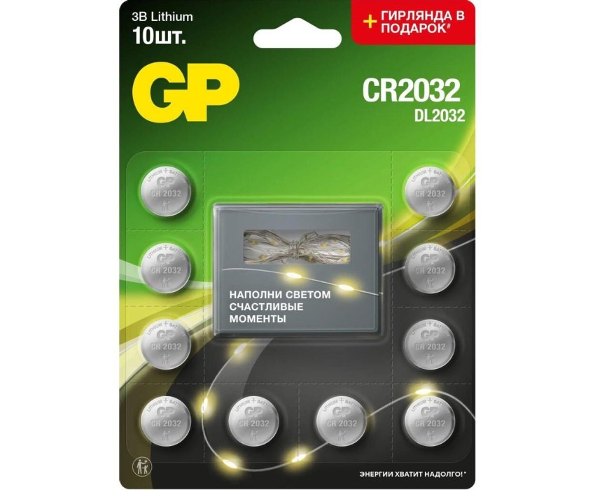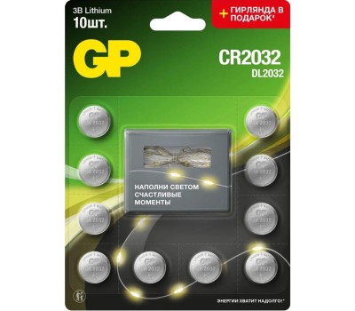 GP Батарея Lithium CR2032/DL CR2032 (промо:Гирлянда в подарок) (10шт) блистер