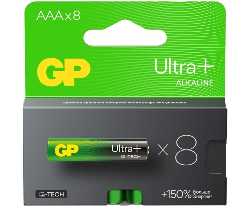 GP Батарея Ultra Plus Alkaline 24AUPA21-2CRB8 AAA (8шт) блистер