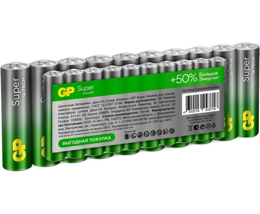 GP Батарея Super Alkaline 15A/24AA21-2CRSWC20 AA/AAA (20шт) спайка