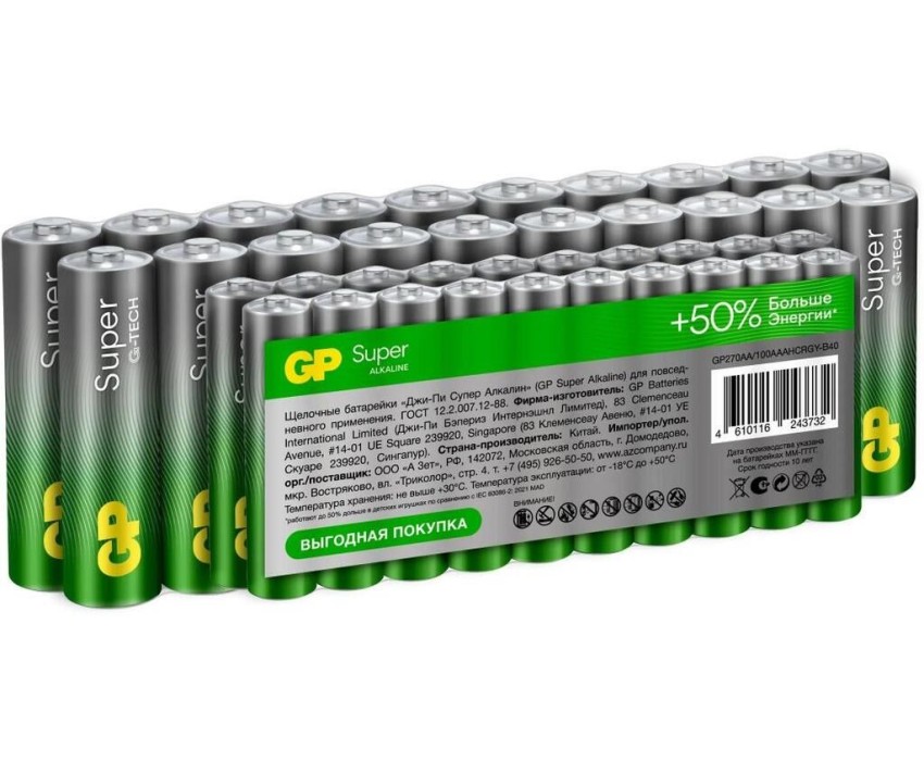 GP AA/AAA Батарейка Super Alkaline 15A/24AA21-2CRSWC40, 40 шт