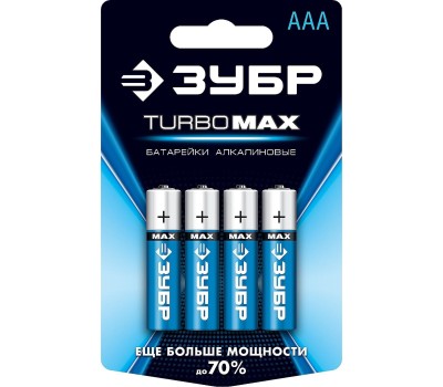 ЗУБР TURBO-MAX, ААА х 4, 1.5 В, алкалиновая батарейка (59203-4C)