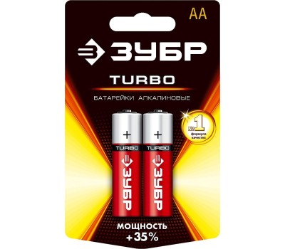ЗУБР TURBO, АА х 2, 1.5 В, алкалиновая батарейка (59213-2C)