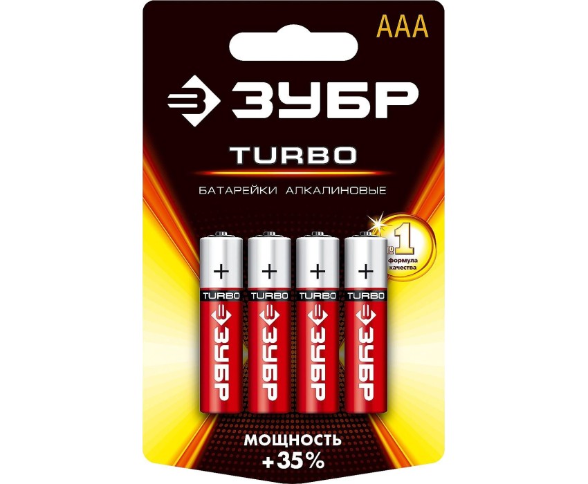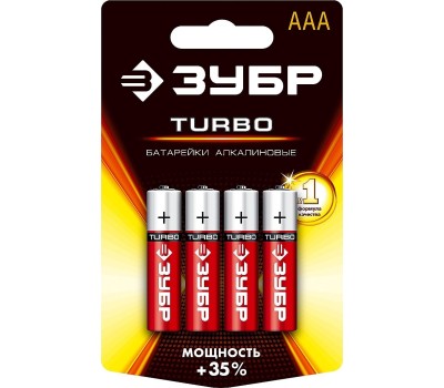 ЗУБР TURBO, ААА х 4, 1.5 В, алкалиновая батарейка (59211-4C)