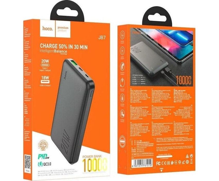 Повер банк HOCO (6931474761019) J87 Tacker PD20W+QC3.0 10000 mAh черный