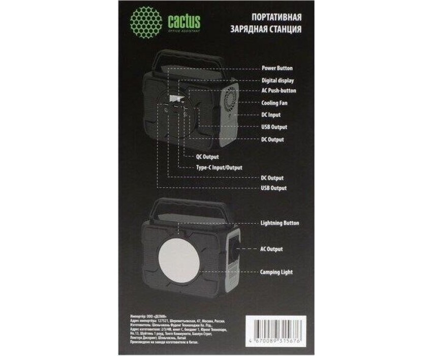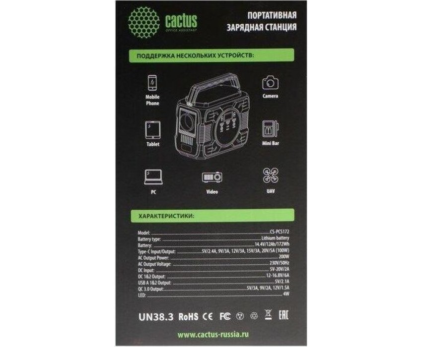 CACTUS Электростанция портативная CS-PCS172 48000mAh 5A 3xUSB черный