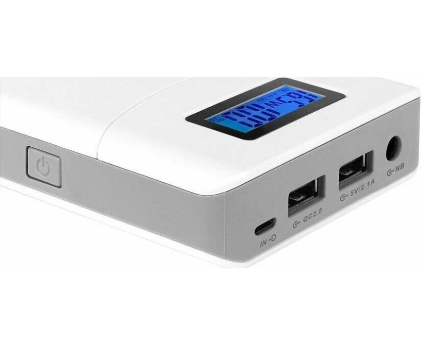 Тип батареи: Li-Ion. Напряжение батареи: 3.7. Емкость батареи: 18000. Время заряда: 2.5. Вес товара: 420. Особенности: Коннекторы: 7.9x5.5 mm - Lenovo, IBM 11x4.5 mm - Lenovo USB Pin 7.4x5.0 mm - Dell, HP 6.5x4.4 mm - Sony, Dell, Samsung, LG, Fujitsu-Siemens 5.5x2.5 mm - Asus, Acer, HP, IBM, Fujitsu-Siemens, Toshiba, Lenovo, LG, MSI 5.5x1.7 mm - Acer, Dell, HP, Toshiba 5.5x3.0 mm - Samsung 2.5x0.7 mm - Asus. Сила тока на выходе: 2.1. Материал корпуса: пластик. Быстрая зарядка: есть. Стандарты быстрой зарядки: Quick Charge 2.0. Кабель для зарядки в комплекте: есть. Энергоемкость батареи: 66.6. Габариты упаковки (ед) ДхШхВ: 0.21x0.13x0.045. Вес упаковки (ед): 0.35. Выходная мощность: 65. Количество выходных разъемов USB-A: 2. Количество выходных разъемов USB-C: 1. Напряжение на выходе: 24. Количество одновременно заряжаемых устройств: 3. Гарантия: 12 мес.. Размеры (ШхВхТ): 174 х 78 х 21 мм. Цвет: белый. Назначение: для ноутбуков, для планшетов, для смартфонов. Защита: от короткого замыкания, от перезаряда. Выходные разъемы: DC разъем, USB-A, USB-C. Дополнительно: дисплей, индикатор уровня заряда. Входные разъемы: USB-C, microUSB. Количество USB разъемов: USB-C: 1, USB-A: 2. Комплектация: кабель для зарядки. Материал корпуса: пластик. Защита: от короткого замыкания, от перезаряда. Батарея: Li-Ion, 18000 мAч. Особенности: быстрая зарядка, дисплей, индикатор уровня заряда. Назначение: для ноутбуков, для планшетов, для смартфонов