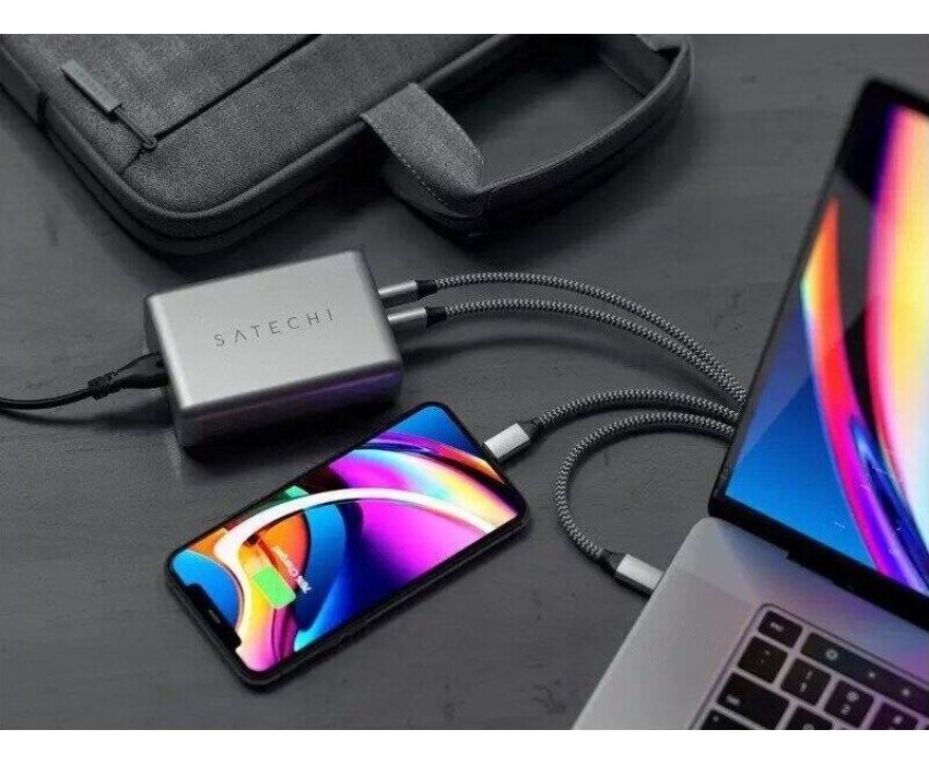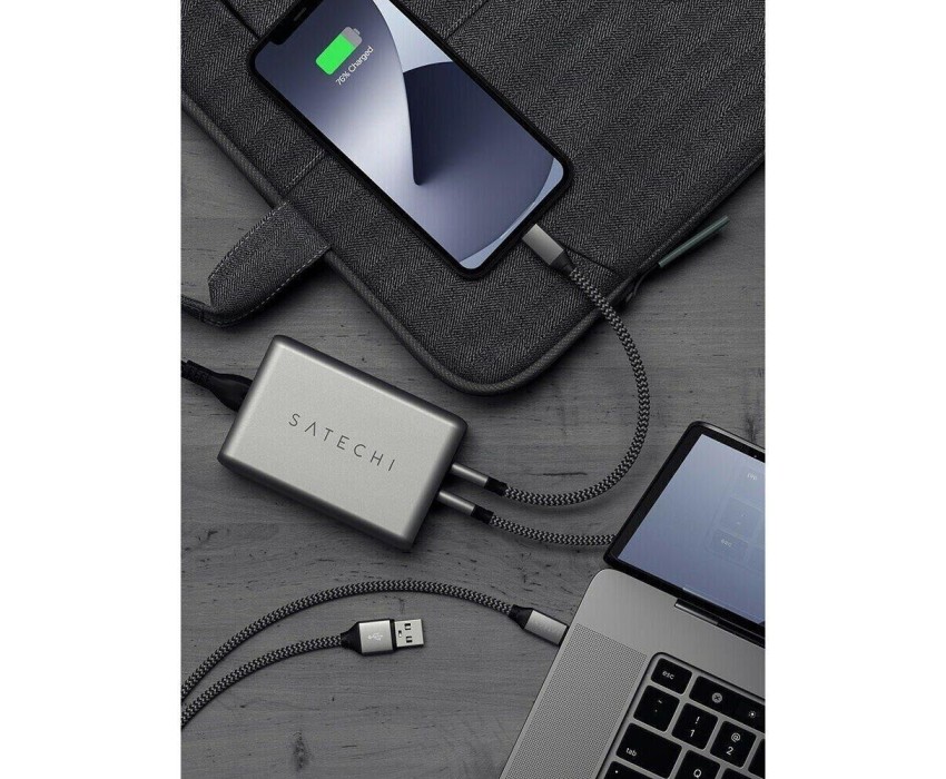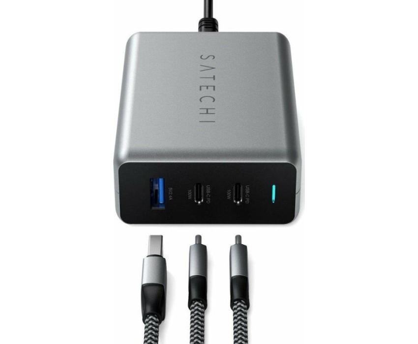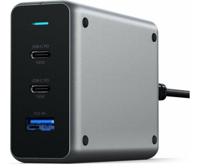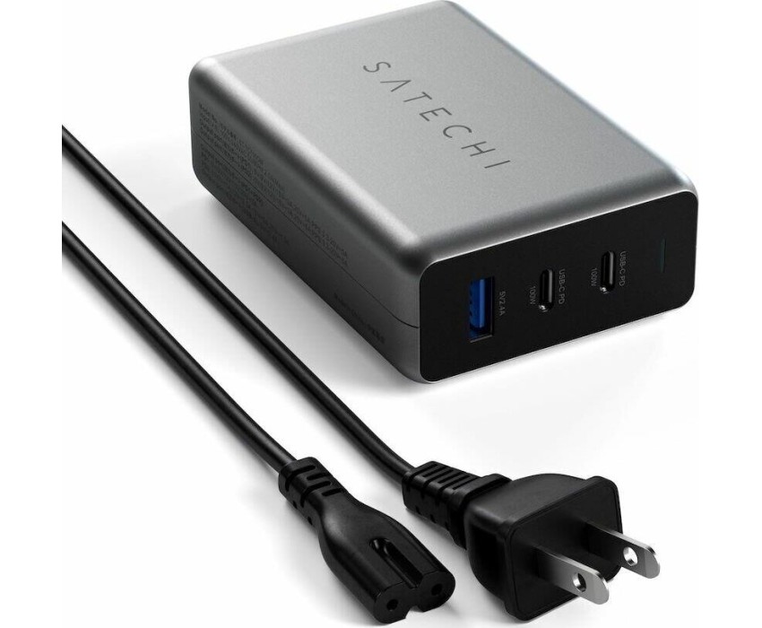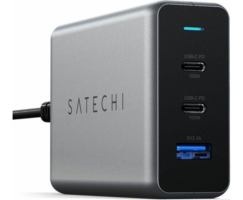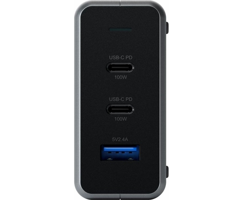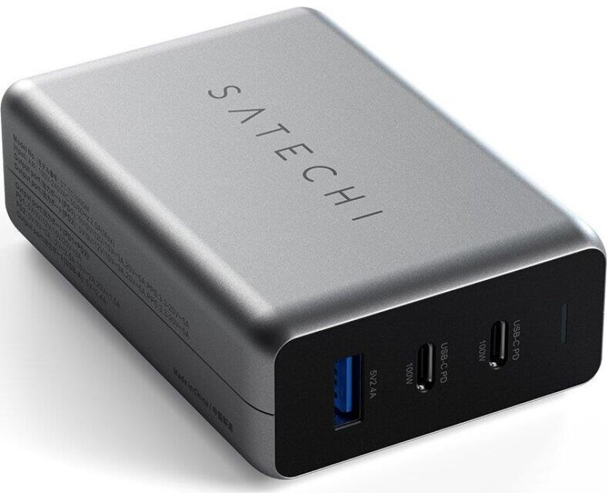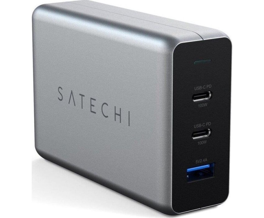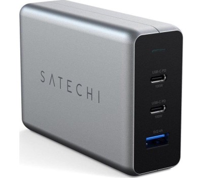 SATECHI Сетевое зарядное устройство Compact Charger с технологией GaN Power. Порты: USB Type-C 100 Вт х 2, USB Type-A до12 Вт. Цвет: серый космос