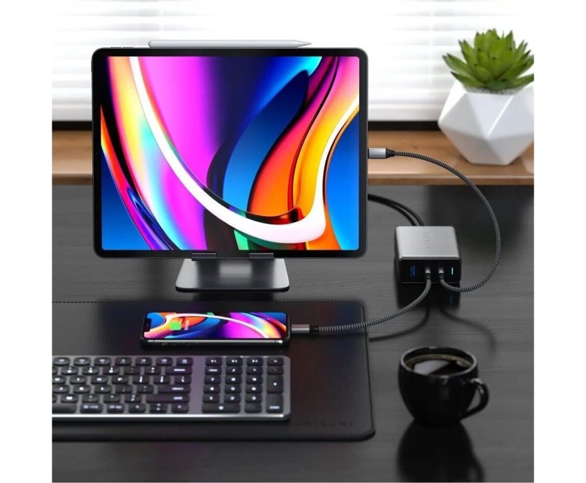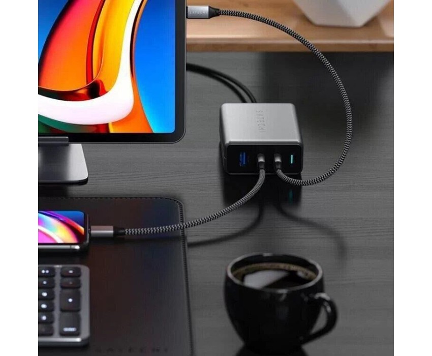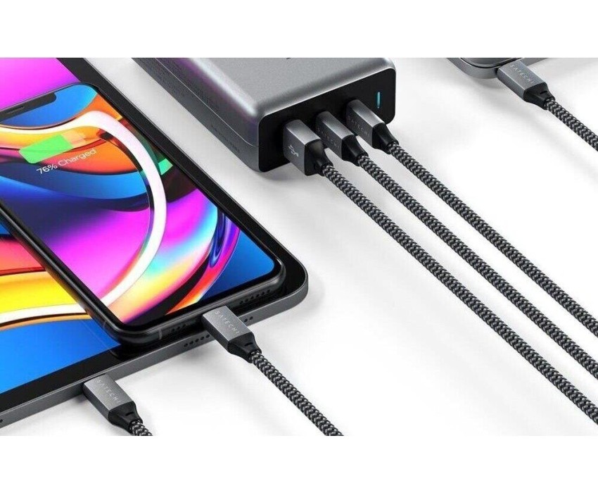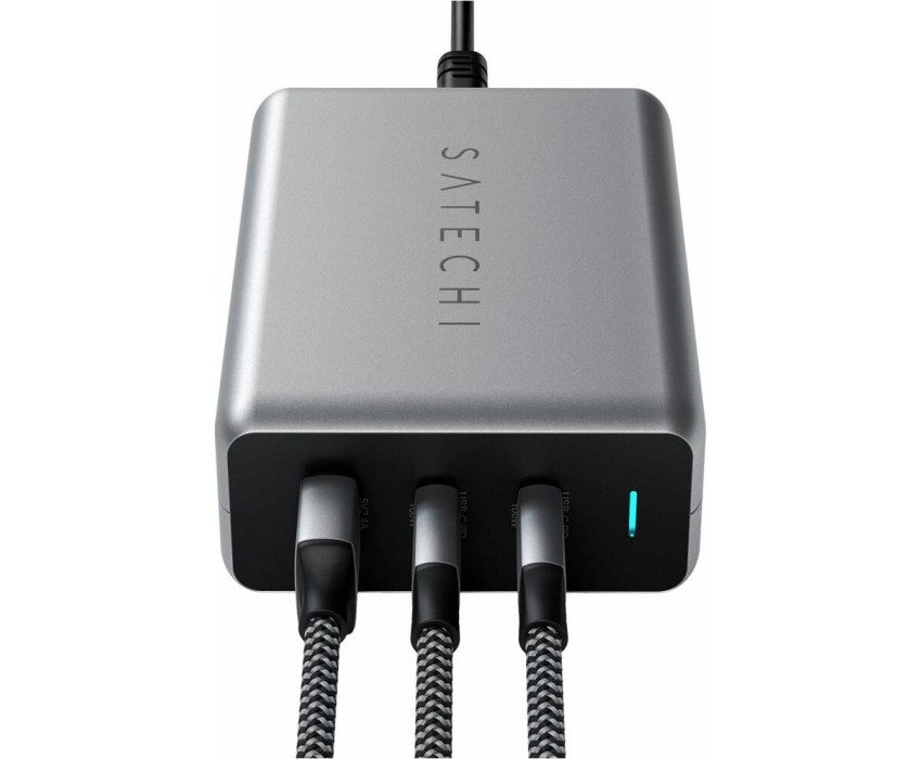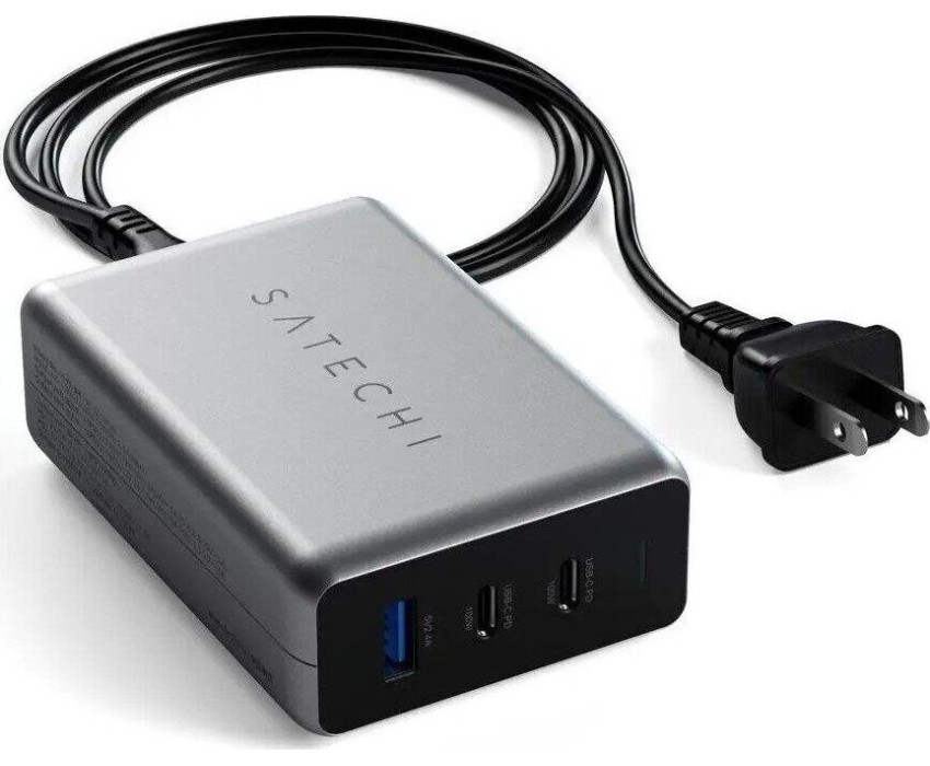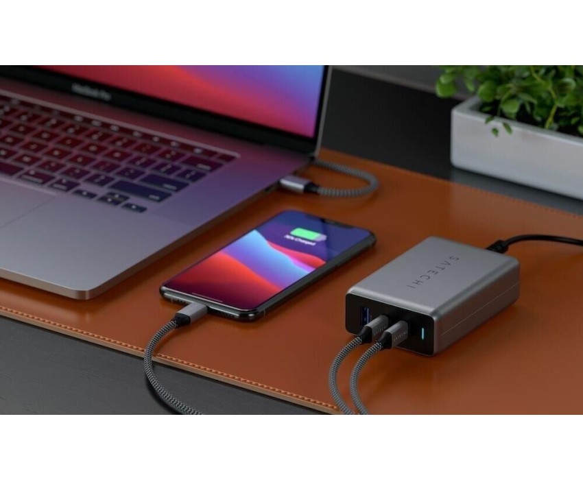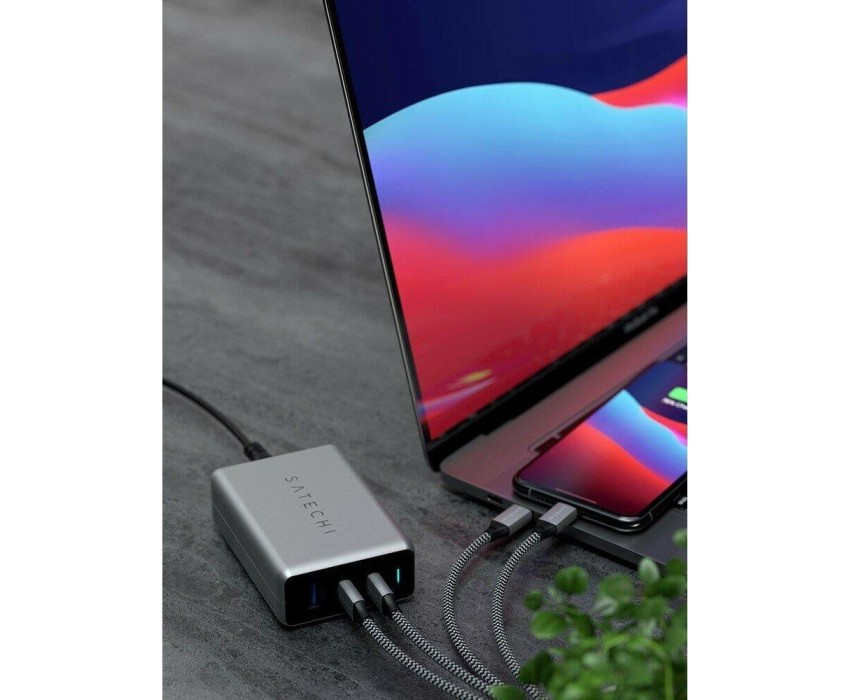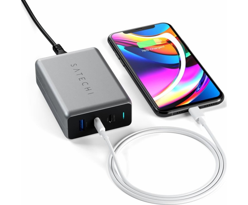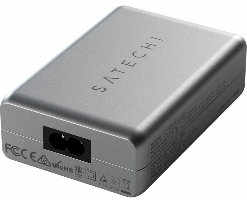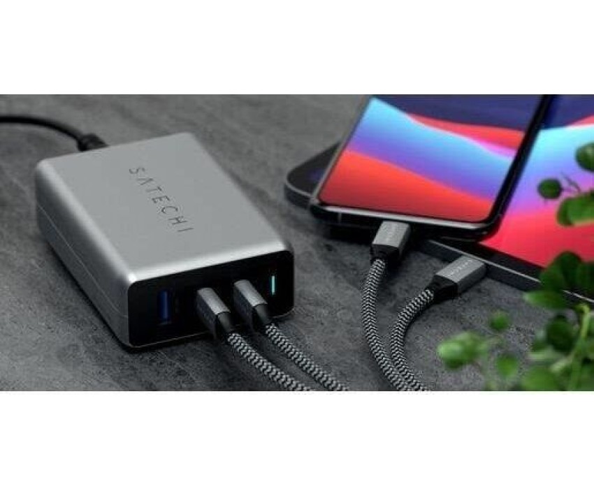SATECHI Сетевое зарядное устройство Compact Charger с технологией GaN Power. Порты: USB Type-C 100 Вт х 2, USB Type-A до12 Вт. Цвет: серый космос