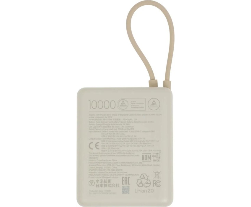 Аккумулятор внешний XIAOMI Внешний аккумулятор (Power Bank) BHR9333GL, 10000мAч, бежевый