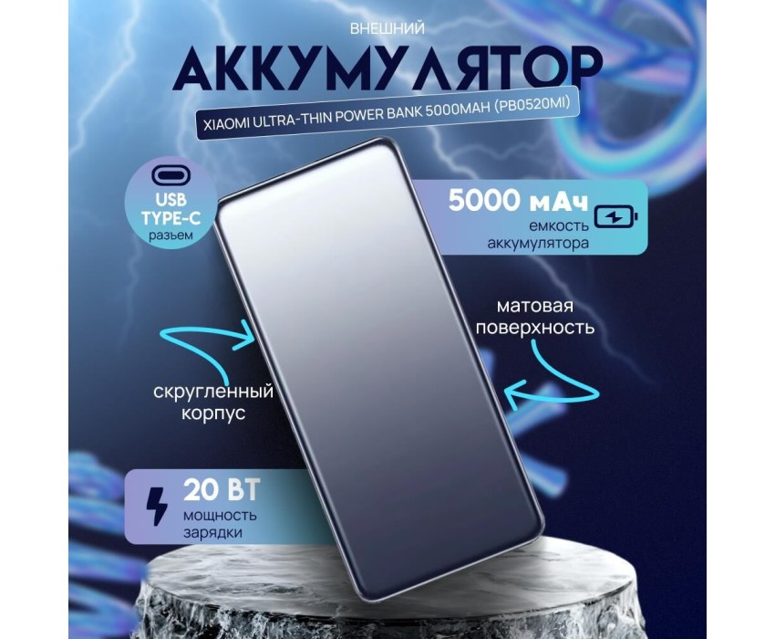Аккумулятор внешний XIAOMI Внешний аккумулятор (Power Bank) Ultra Slim, 5000мAч, серый [bhr9535gl]