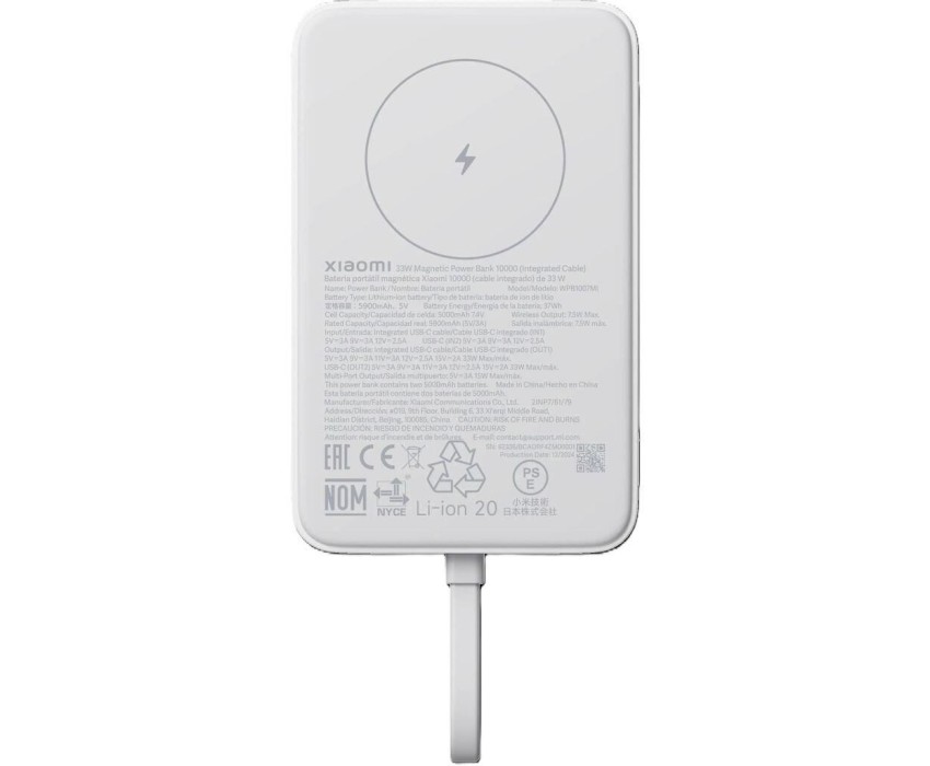 Аккумулятор внешний XIAOMI Внешний аккумулятор (Power Bank) Magnetic BHR9822GL, 10000мAч, белый