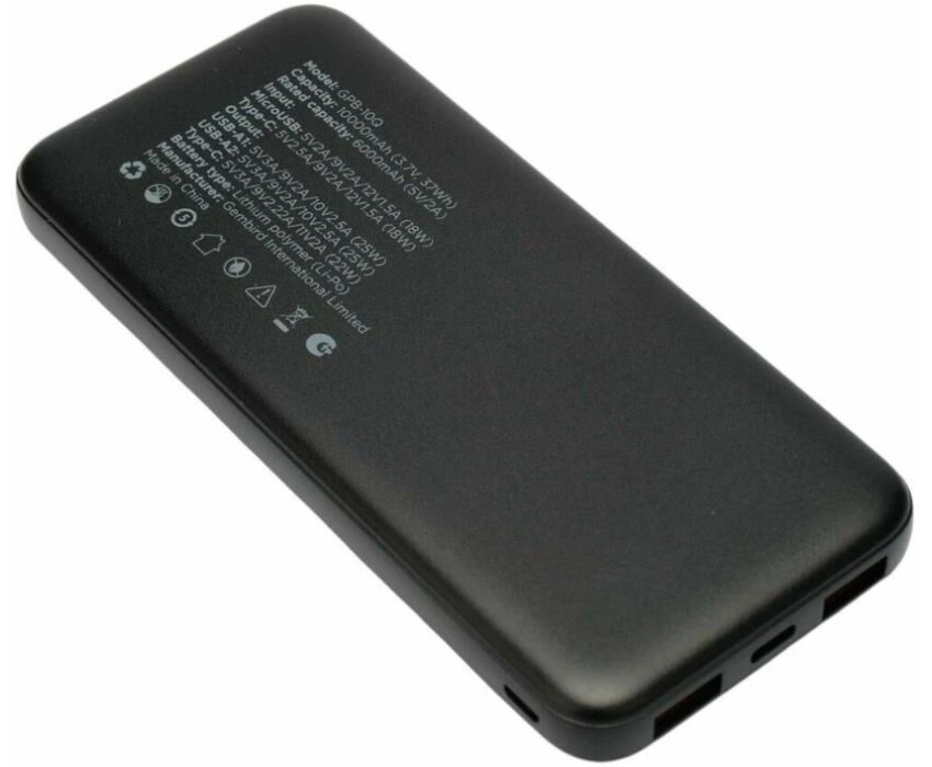 [Аксессуар] Gembird Портативный аккумулятор, 10000мАч, QC/PD, дисплей, черный (GPB-10Q)