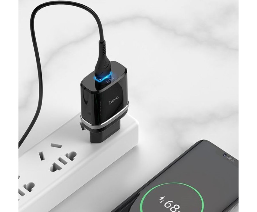 Сетевое ЗУ HOCO (6931474716293) C12Q 1USB 3.0A QC3.0 TYPE-C 1м черный