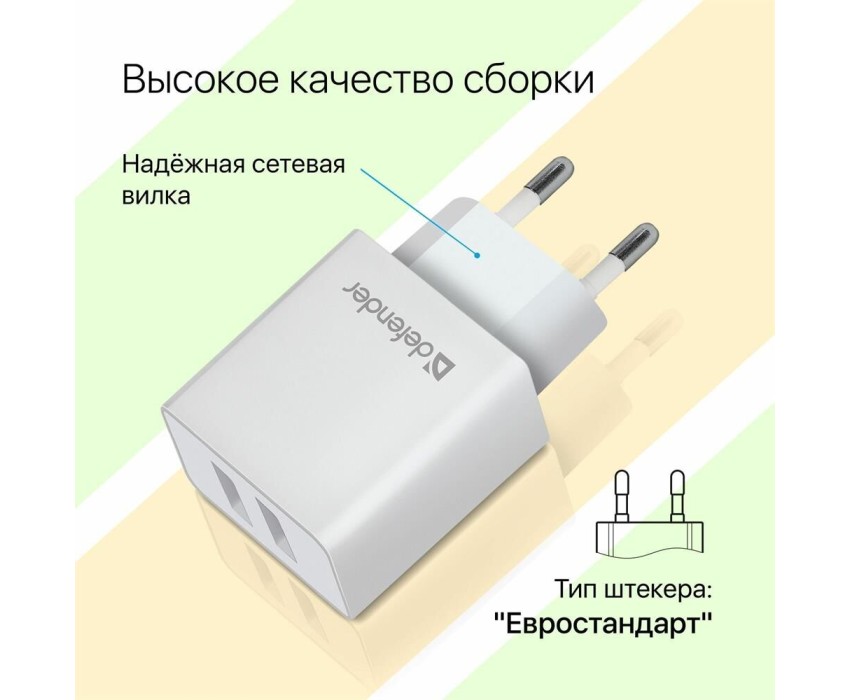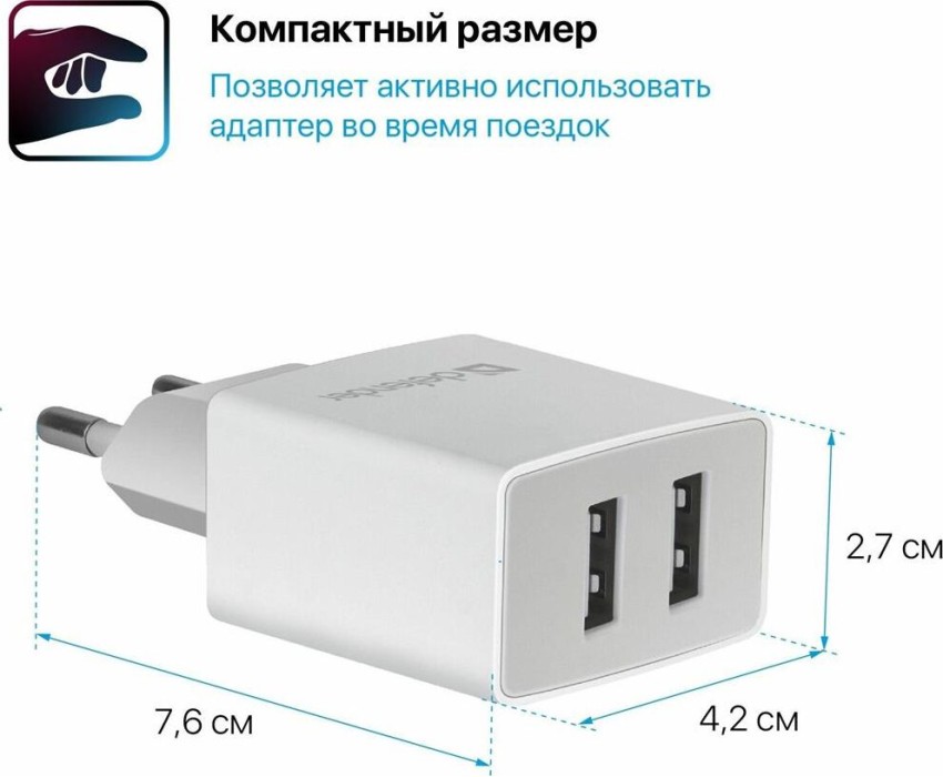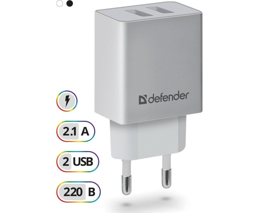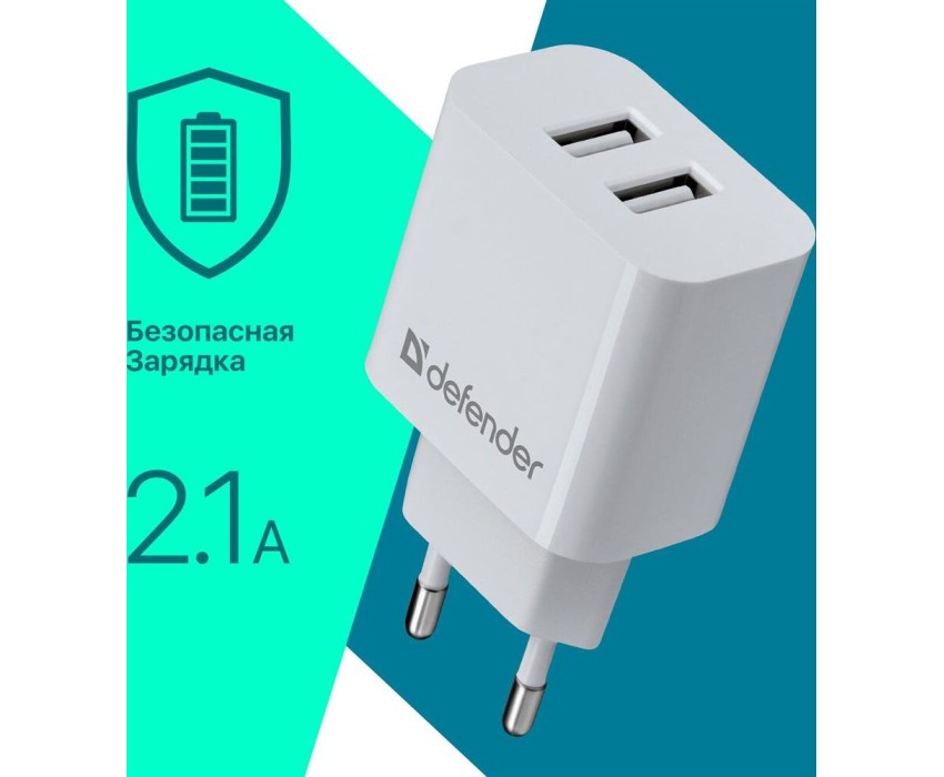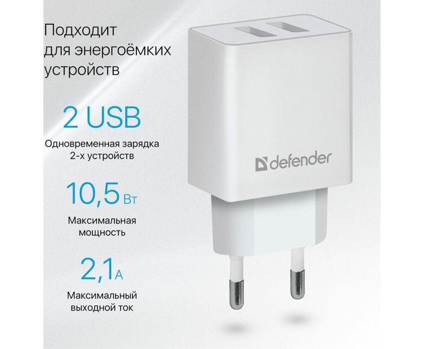 Питание: От сети 220В, Выходные разъемы: 2 x USB, Выходное напряжение: 5В, Максимальная мощность: 10,5 Вт, Входное напряжение: 110-240 В, Максимальный выходной ток: 2100 мА, Выходной ток: USB 1 - 1000 мА, USB 2 - 2100 мА, Дополнительные функции: Зарядка двух устройств одновременно,Материал корпуса: Пластик.