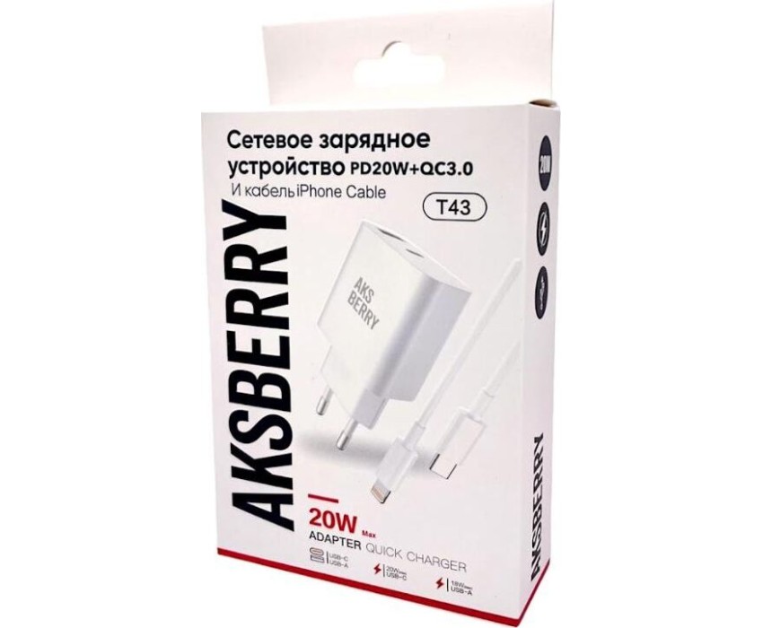 СЗУ AKSBERRY (6900253200019) T43 20W PD + QC3.0 + кабель Lightning , белый