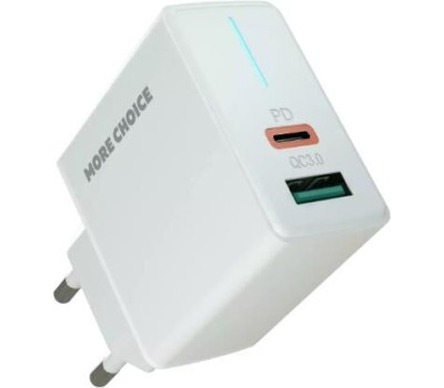 СЗУ MORE CHOICE (4610196408649) NC61 СЗУ 1USB+1USB-C 3.0A PD 20W+QC3.0 быстрая зарядка White