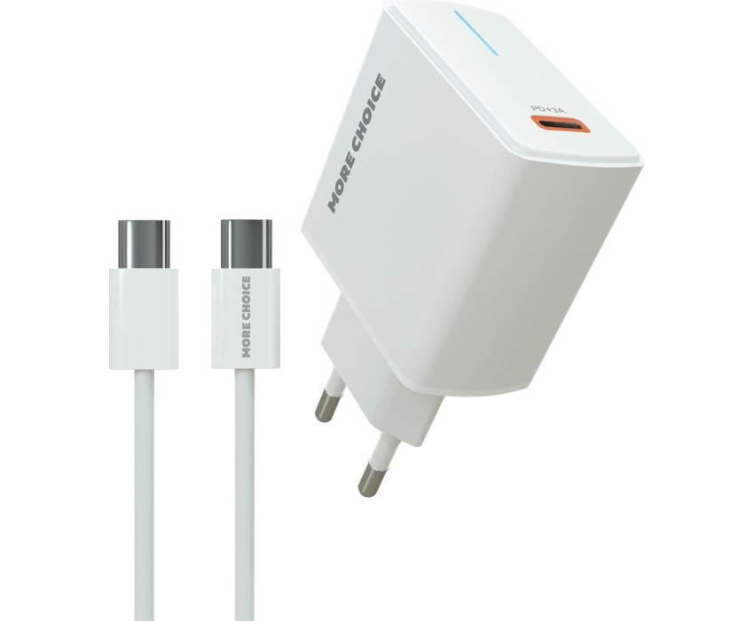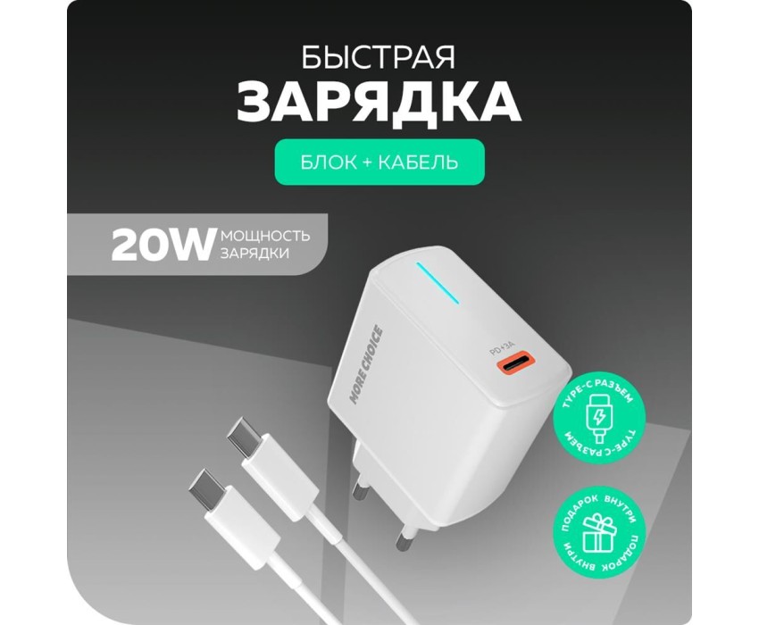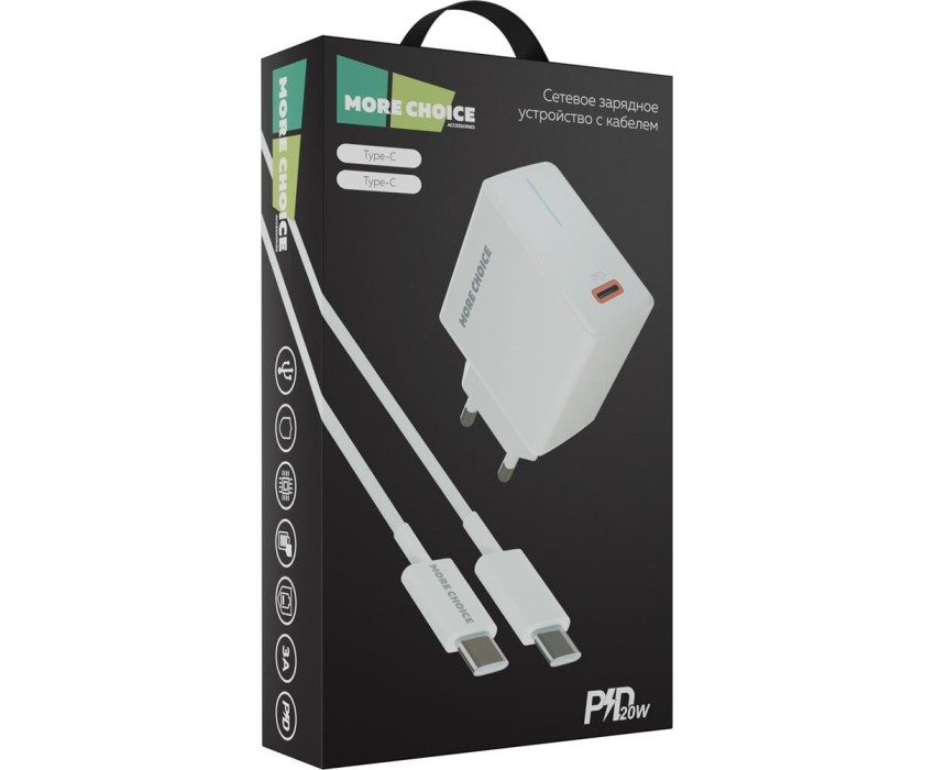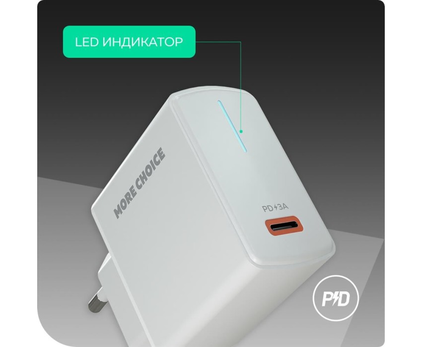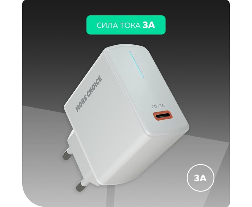 СЗУ MORE CHOICE (4610196408915) NC60a 1USB-C 3.0A PD 20W быстрая зарядка для Type-C White